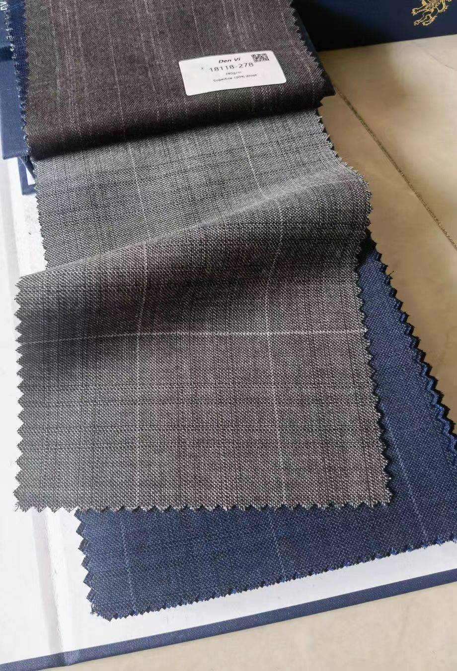 This Den Vi collection of fabrics has been Benefits of this collection include woven from fine merino wool that has the fabrics have an intrinsic durability been blended with the technical fibre yester to produce a fabric that Garments resist excessive creasing combines the benefits of natural and and recover well between each wear manmade fibres. Denvi collect all kinds easy care fabric in this collection which is the less price in all DV wool samples(DV1818-DV1820) When tailored this Garments will allow the body to emarkable cloth results in garments breathe, due to the wicking qualities that are durable, excellent for travel of the technical fibre polyester and easy to care for Garments will also allow the body to remain cool in warmer climates. This remarkable mix of fibers offers Garments will keep their shape.